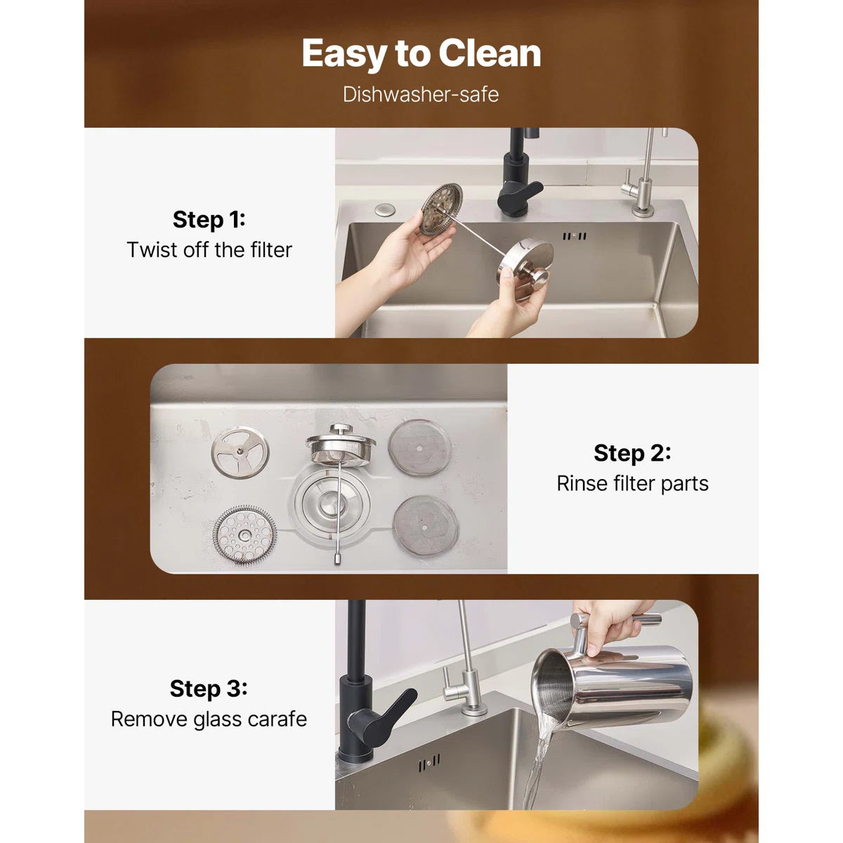 Features a high-performance multi-layer filtration system with a stainless steel spiral plate, fine mesh filter, and cross plate, effectively removing coffee grounds for a smooth, sediment-free cup every time.