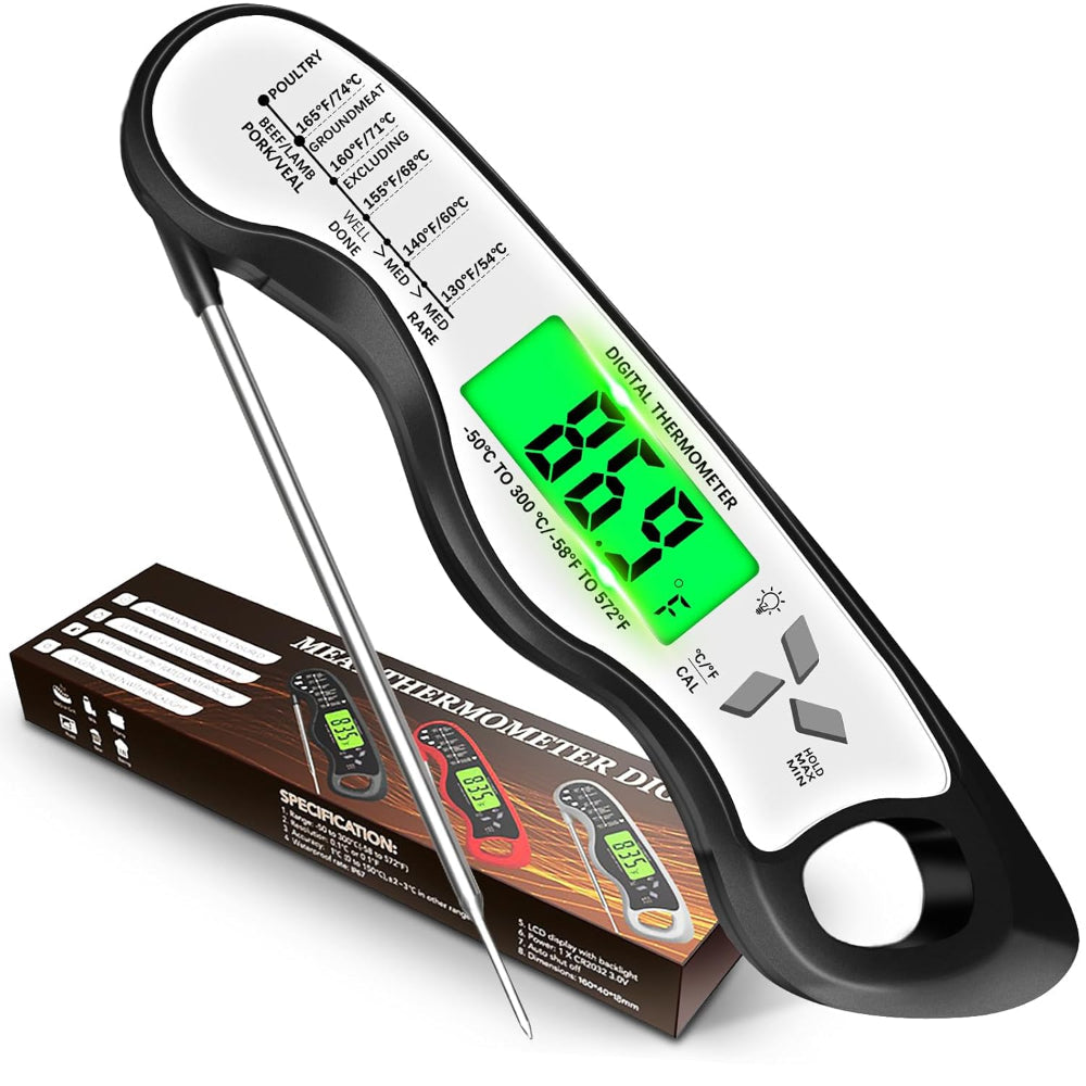 - EXQUISITE GIFT, SAFE CHOICE - Our instant read meat thermometer packaging is simple and exquisite, and can be given as a holiday gift to relatives and friends who like cooking. Each kitchen thermometer has undergone a strict quality inspection process, please rest assured to buy. If you have any questions before or after purchase, please feel free to contact us, we will provide you with the best answers and help.