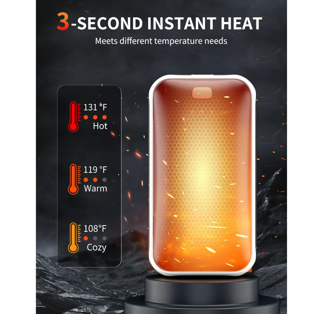 Dual 2000mAh batteries deliver rapid heat in just 3 seconds, with up to several hours of warmth per charge. -