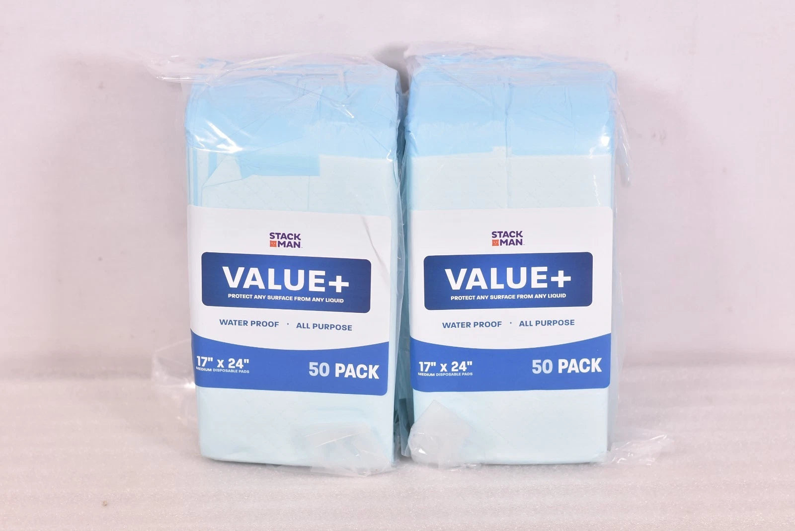 Stack Man Value Chux Pads 17” x 24” (100 Count) are designed to provide reliable, absorbent, and disposable protection in a wide variety of situations. Thanks to their multi-layer construction, they quickly absorb liquids and help keep surfaces clean and dry.
